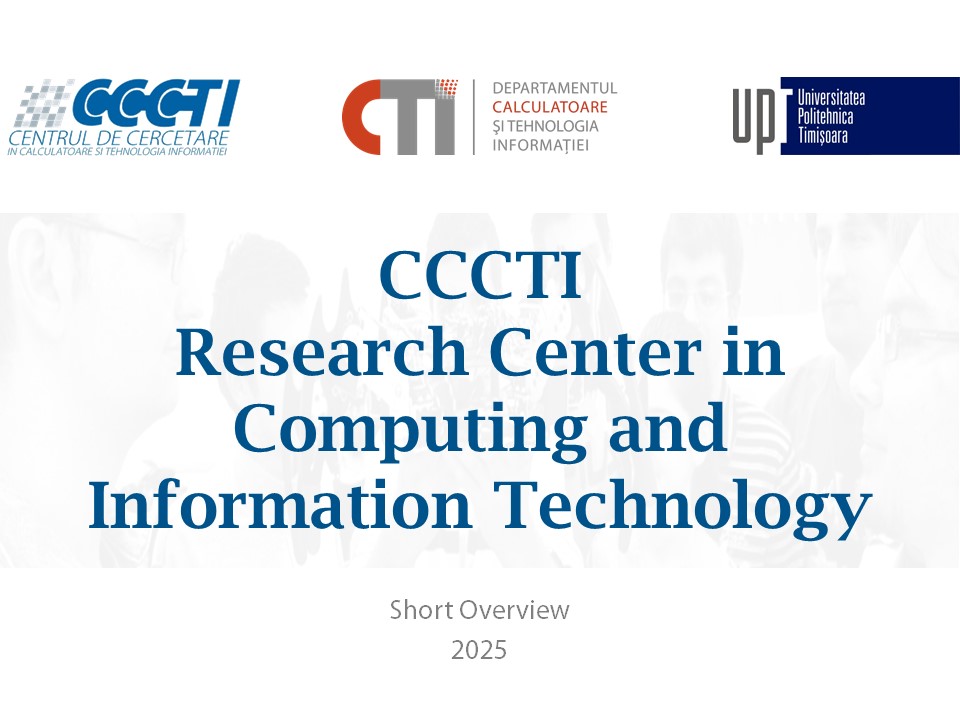 Centrul de Cercetare în Calculatoare și Tehnologia Informației (CCCTI) susține activitățile de cercetare ale membrilor DCTI, ale doctoranzilor și cercetătorilor asociați în domeniul general al Calculatoarelor și Tehnologiei Informației.